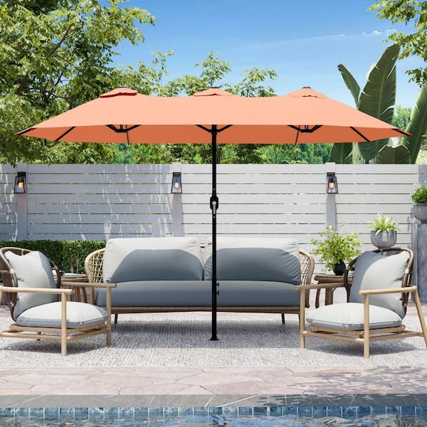 12.5 ft. x 6.6 ft. Market Double-Sided Patio Umbrella Steel Frame Garden Large Waterproof Twin Umbrella in Pink