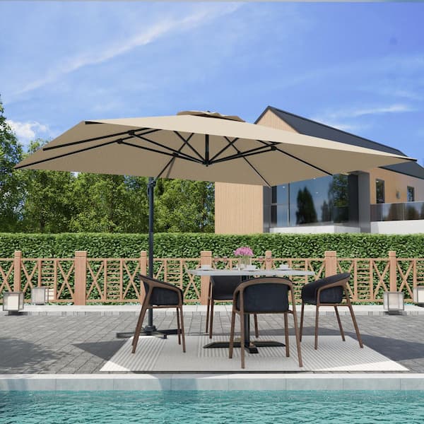 13 ft. x 10 ft. Market Patio Umbrella Steel Frame Garden Large Waterproof Cantilever Umbrella in Beige