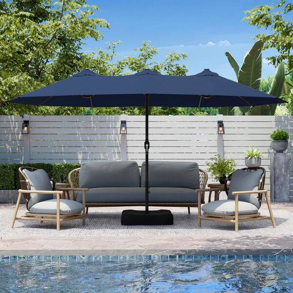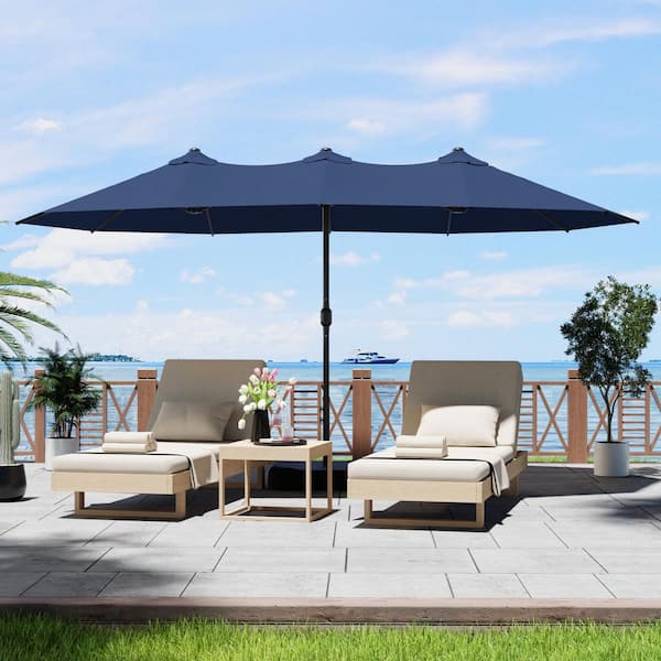 15 ft. x 8.7 ft. Market Double-Sided Patio Umbrella Steel Frame Garden Extra-Large Waterproof Twin Umbrella in Dark Blue