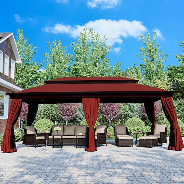 20 ft. x 10 ft. Red Outdoor Patio Steel Frame Soft Top Gazebo with Mosquito Netting and Weather-Resistant Canopy Top