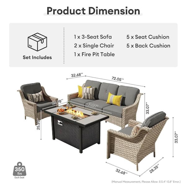 • Includes a 3-person sofa, 2 single chairs and 1 firepit