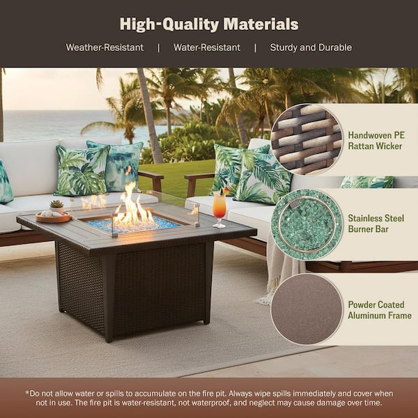 Ethan 42 in. Rattan Wicker Propane Gas Outdoor Patio Fire Pit Table With Aluminum Frame in Brown
