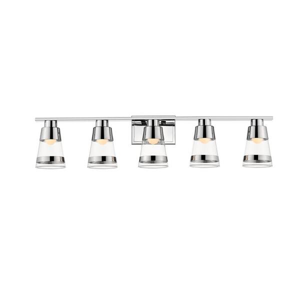 Ethos 40 in. 5-Light Chrome Integrated LED Shaded Vanity Light with Clear Glass Shade