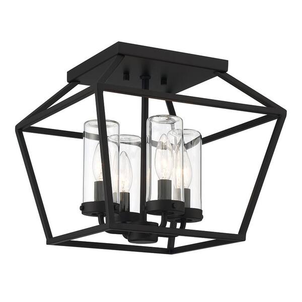 Bastille 4-Light Black Outdoor Flush Mount Light with Clear Glass (1-Pack)