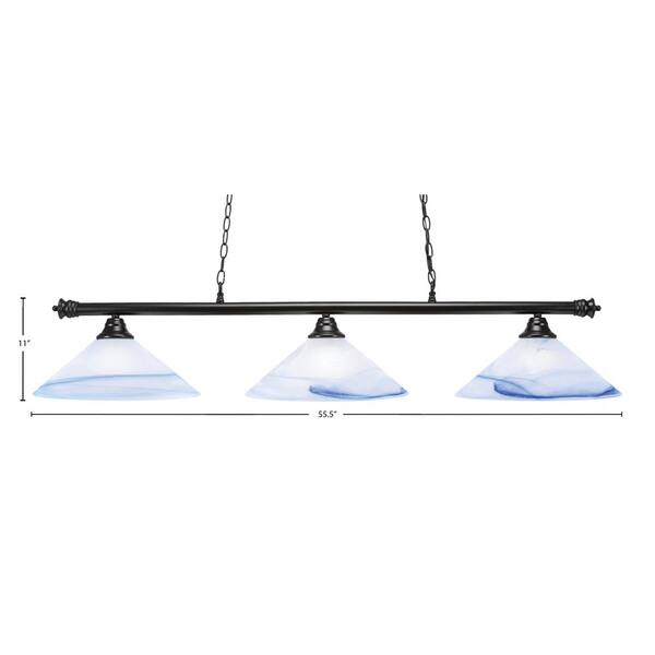 Evanston 55.5 in. 3 Light Matte Black Billiard Light with Blue Swirl Glass Shade