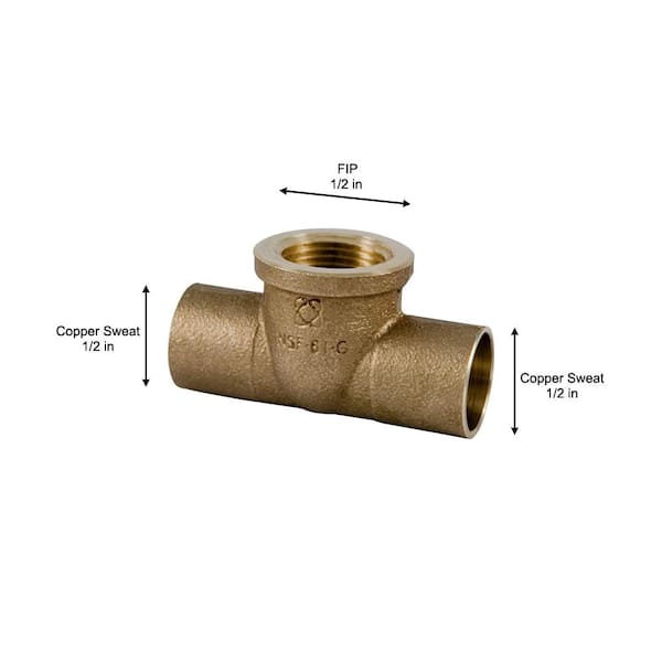 1/2 in. Forged Bronze Lead-Free Cup x Cup x FIP Tee Fitting