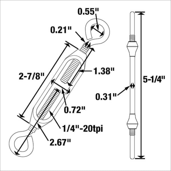 1/4 in. x 5-1/4 in. Stainless Steel Eye and Eye Turnbuckle