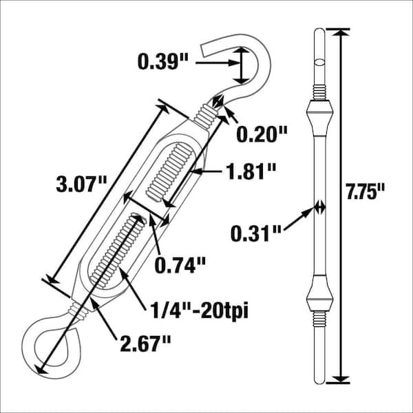 1/4 in. x 7-3/4 in. Zinc-Plated Turnbuckle Hook/Eye