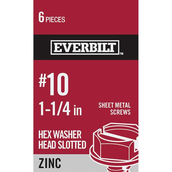 #10 1-1/4 in. Slotted Hex-Head Sheet Metal Screws (6-Pack)