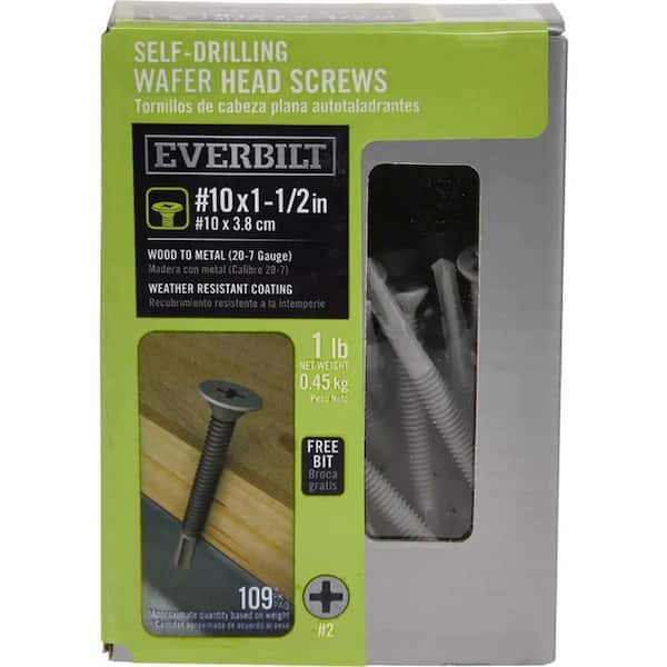 #10 x 1-1/2 in. Wafer Head Phillips Drive Self-Drilling Screw 1 lb. Box (109-Pack)