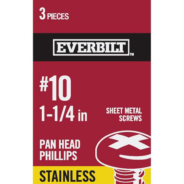 #10 x 1-1/4 in. Phillips Pan Head Stainless Steel Sheet Metal Screw (3-Pack)