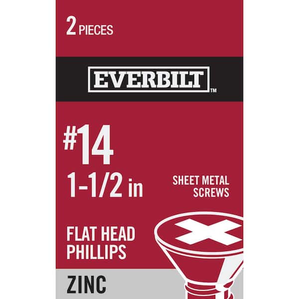 #14 x 1-1/2 in. Zinc Plated Phillips Flat Head Sheet Metal Screw (2-Pack)