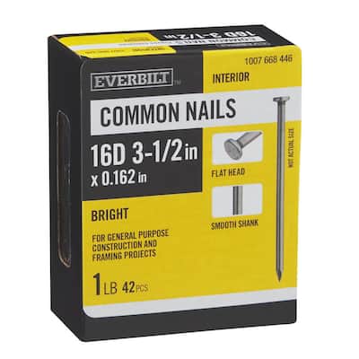 16D 3-1/2 in. Common Nails Bright 1 lb (Approximately 45 Pieces)
