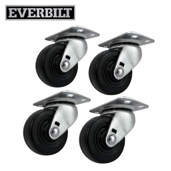 2 in. Black Soft Rubber and Steel Swivel Plate Casters with 90 lbs. Load Rating 4 Pack