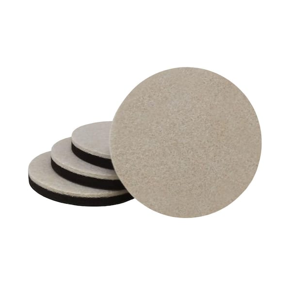 3-1/2 in. Beige Round Self-Adhesive Felt Heavy-Duty Furniture Slider Glides for Hard Floors (4-Pack)