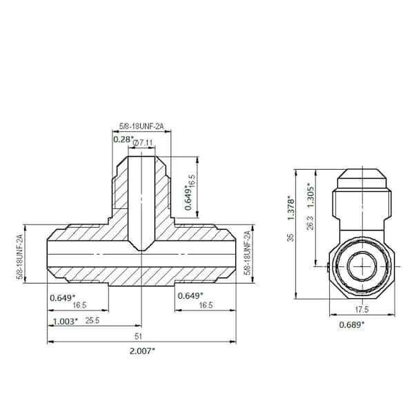 • Special "T" shape with three flare connections