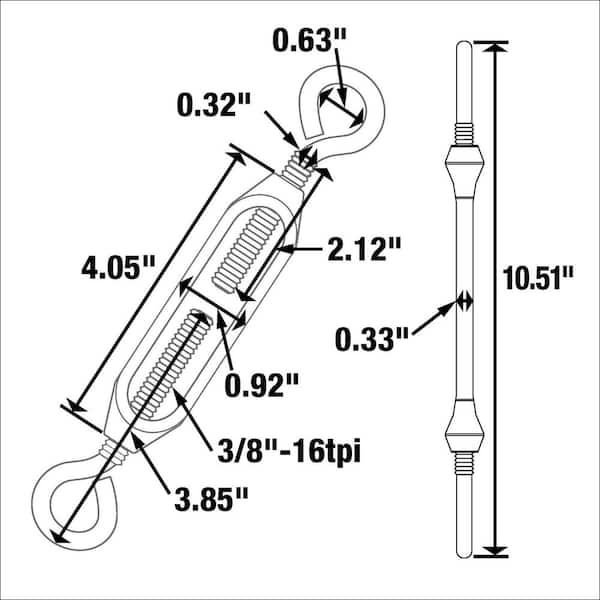 3/8 in. x 10-1/2 in. Zinc-Plated Steel Eye-to-Eye Turnbuckle