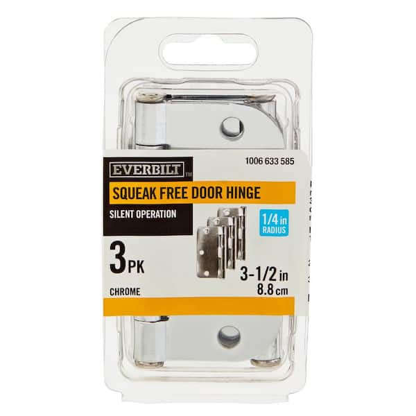 3-Pack 3-1/2 in. x 1/4 in. Radius Chrome Squeak-Free Butt Door Hinge