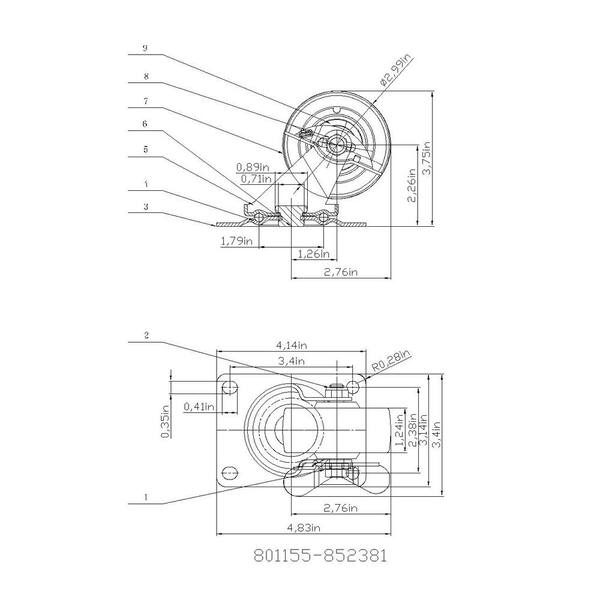 3 in. General Duty Black Polyproplyene Caster Swivel Plate with Brake 175 lbs. Weight Capacity