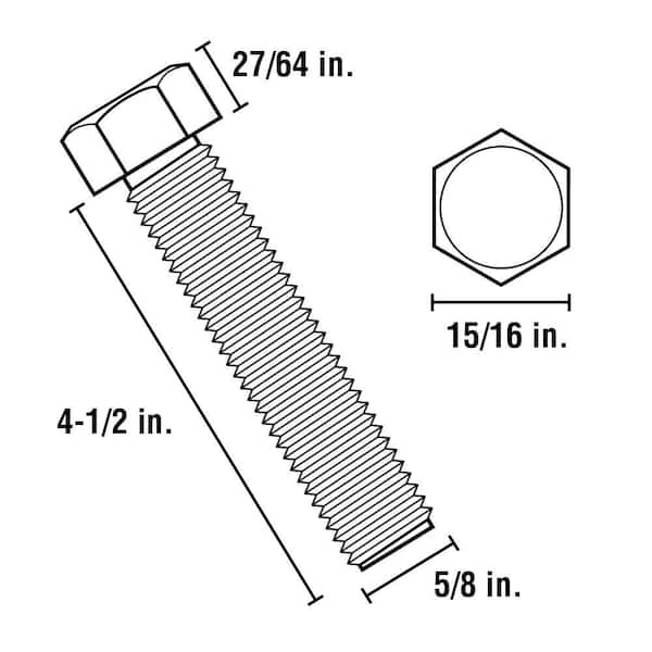 5/8-11 in. x 4-1/2 in. Zinc Plated Hex Bolt