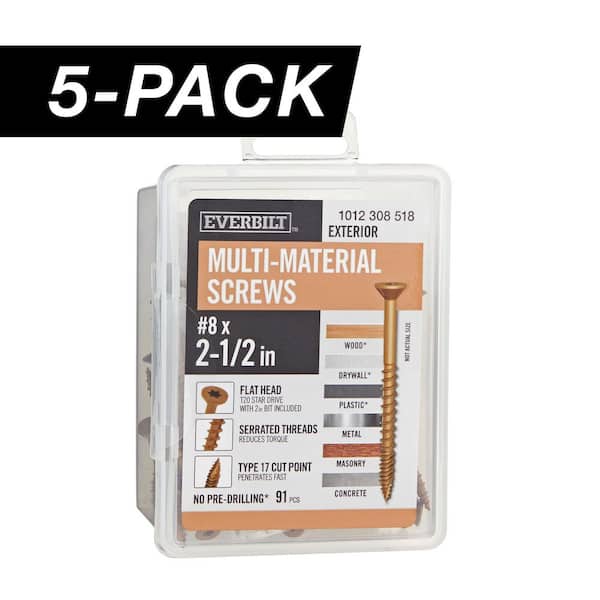 5-Pack #8 x 2-1/2 in. Brown 6-Lobe Star Drive Exterior Flat Head Multi-Material Screw (5 lbs. / 455-Piece)
