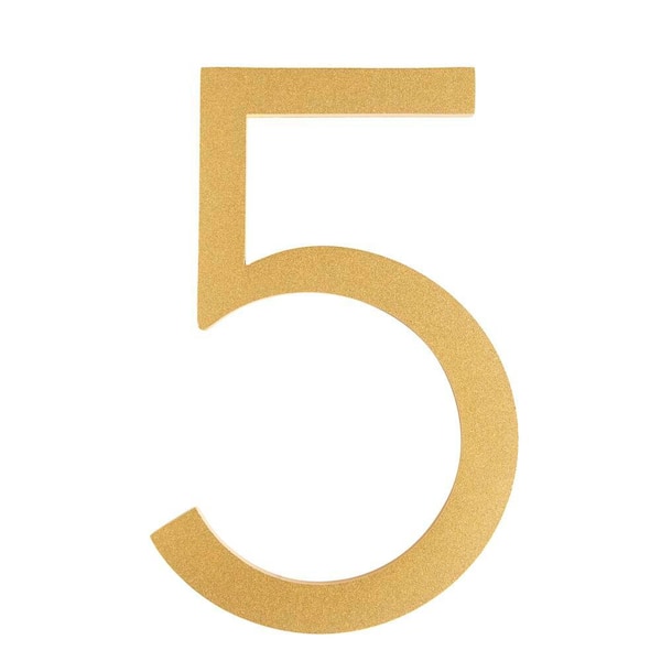 8 in. Brushed Brass Aluminum Floating or Flat Modern House Number 5