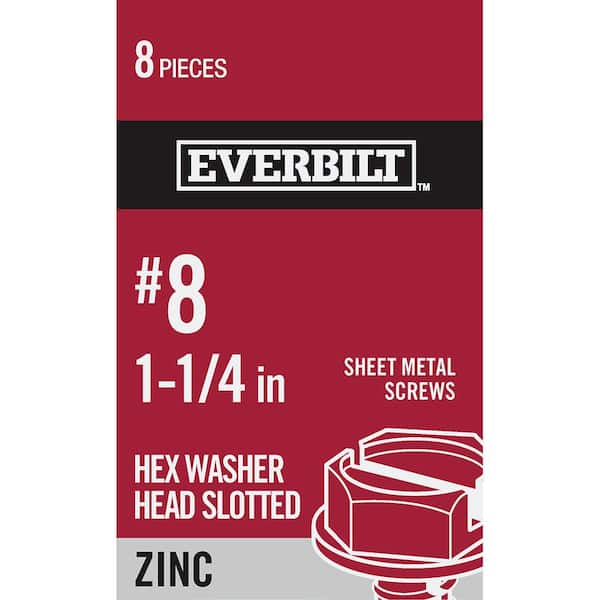 #8 x 1-1/4 in. Zinc-Plated Steel Hex-Head Slotted Sheet Metal Screw (8 Per Pack)