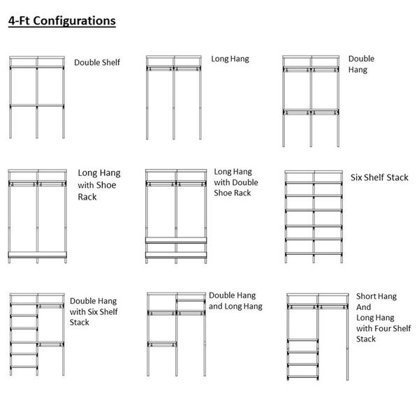 Genevieve 4 ft. White Adjustable Closet Organizer with Double and Long Hanging Rods