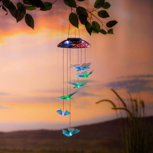 29 in. Butterfly Hand-Painted Color-Changing Solar Mobile
