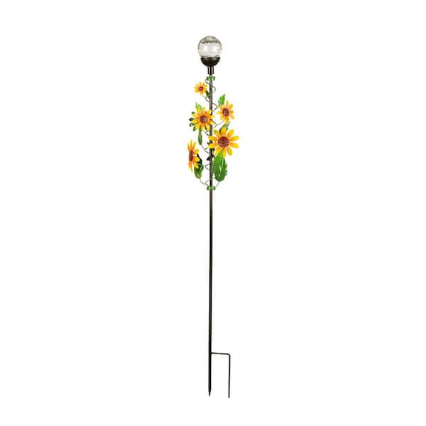 37 in. Solar Metal Garden Stake, Crackled Glass Sunflower
