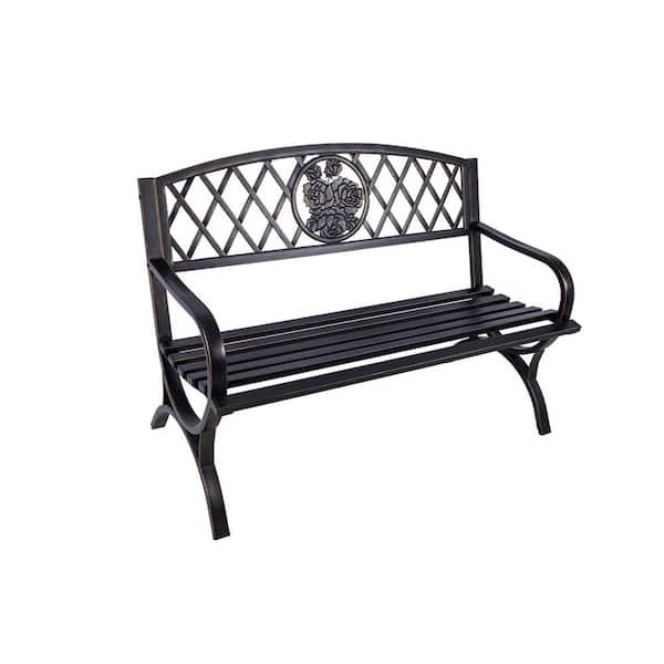 Flower Basket 45 in. Black Metal Outdoor Garden Bench