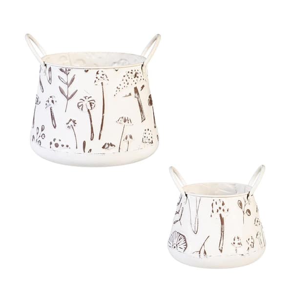 White Embossed Metal Mushroom Planter with Handles (2-Pack)