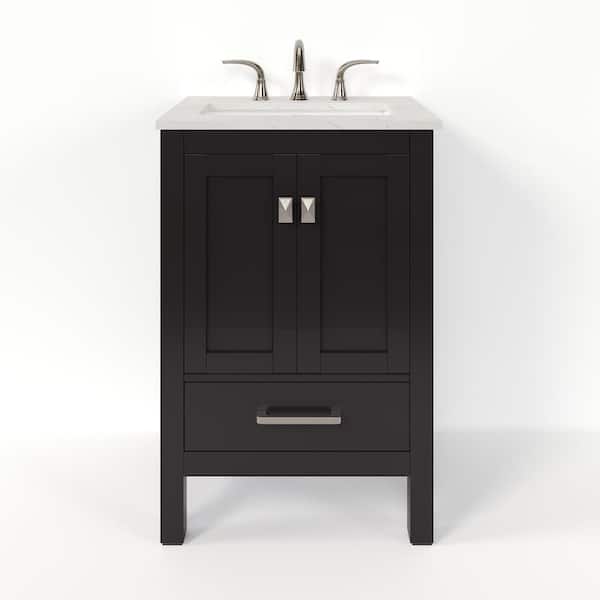 Aberdeen 24 in. Single Sink Espresso Bath Vanity with White Carrara Quartz Top (Assembled)
