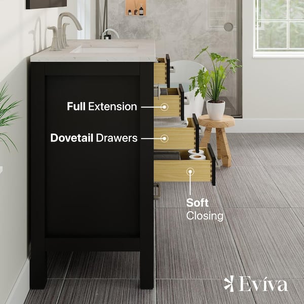 • 36 in. W x 22 in. D x 34 in. H vanity with carrara quartz top