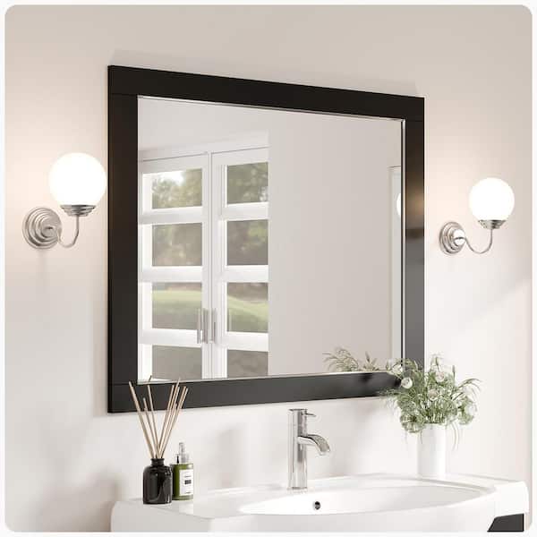 Aberdeen 36 in. W x 30 in. H Small Rectangular Manufactured Wood Framed Wall Bathroom Vanity Mirror in Espresso