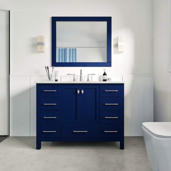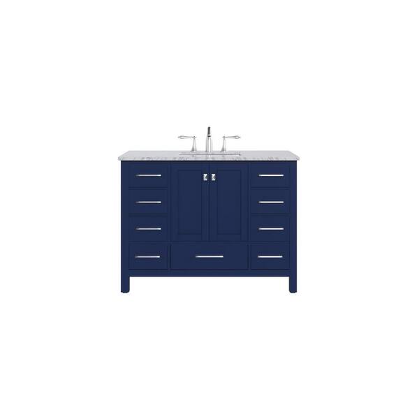 Aberdeen 42 in. Single Sink Blue Bath Vanity with White Carrara Marble Top (Assembled)