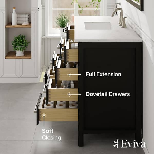 • 48 in. W x 22 in. D x 34 in. H vanity with carrara quartz top
