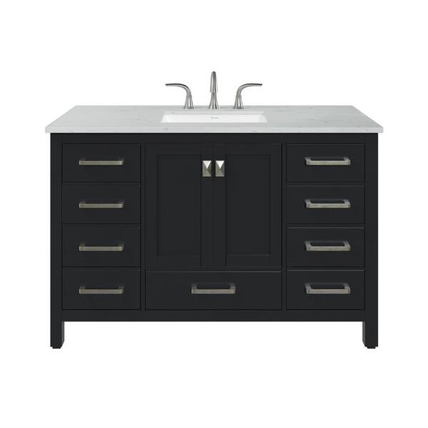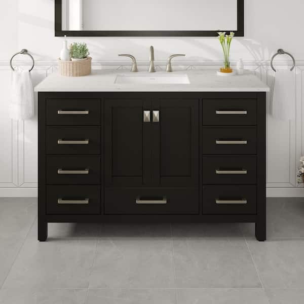 Aberdeen 54 in. Single Sink Espresso Bath Vanity with White Carrara Quartz Top (Assembled)