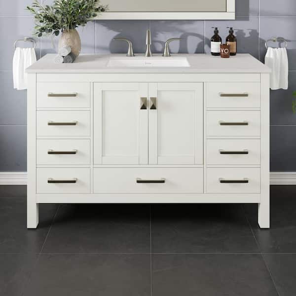 Aberdeen 54 in. Single Sink White Bath Vanity with White Carrara Quartz Top (Assembled)