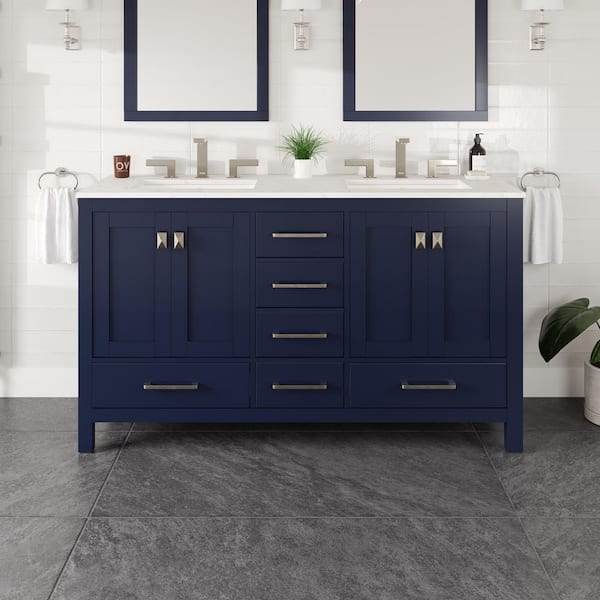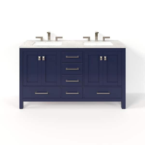 Aberdeen 60 in. Double Sink Blue Bath Vanity with White Carrara Quartz Top (Assembled)