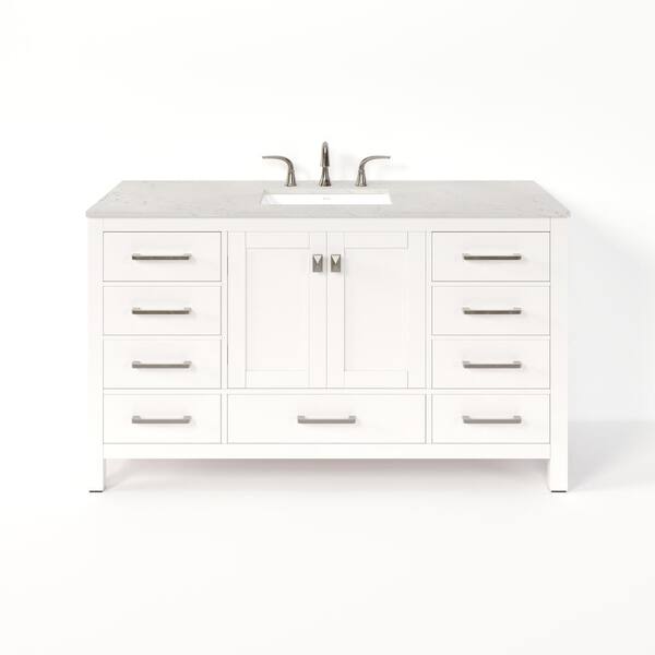 Aberdeen 60 in. Single Sink White Bath Vanity with White Carrara Quartz Top (Assembled)