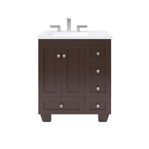 Acclaim 28 in. Single Sink Teak Bath Vanity with White Carrara Quartz Top (Assembled)