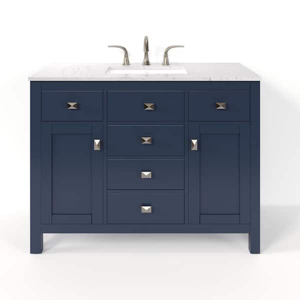 Artemis 42 in. Single Sink Blue Bath Vanity with White Engineered Stone Top (Assembled)