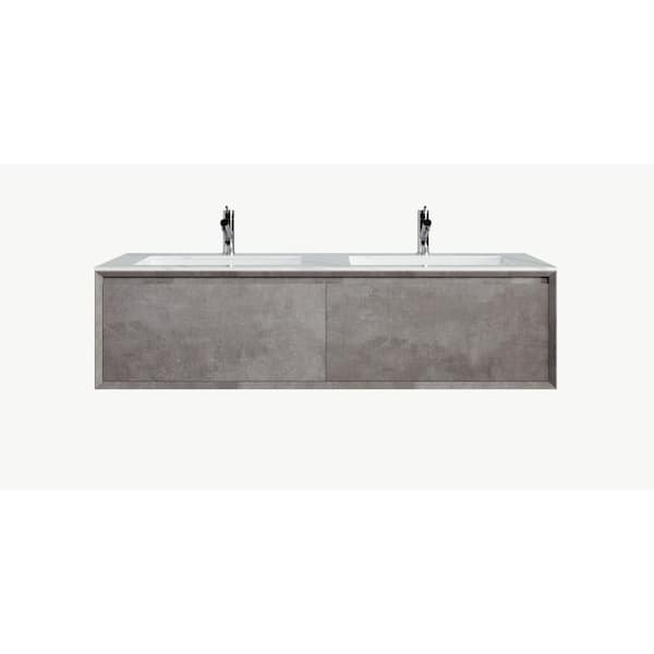 Aurora 60 in. Double Sink Floating Concrete Gray Bath Vanity with White Carrara Quartz Top (Assembled)