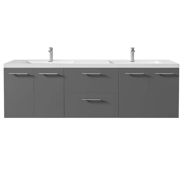Axis 72 in. Double Sink Floating Gray Bath Vanity with White Acrylic Top (Assembled)