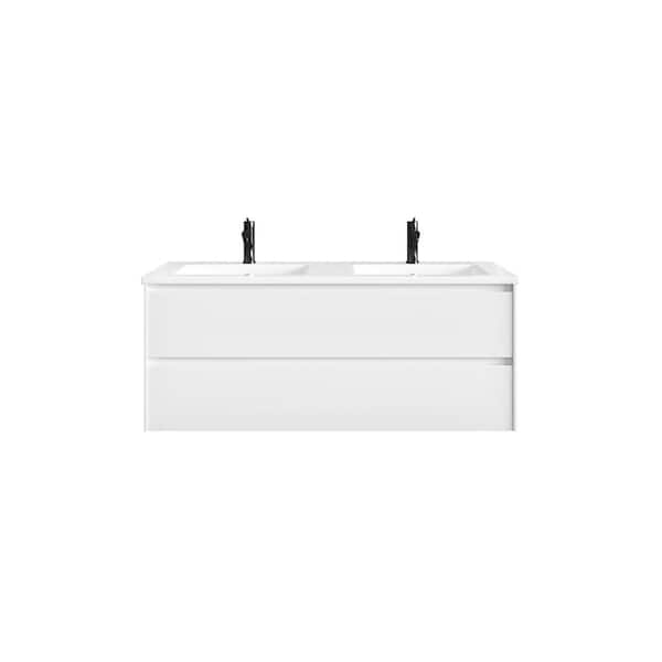 Bloom 48 in. Double Sink Floating Matte White Bath Vanity with White Porcelain Top (Assembled)
