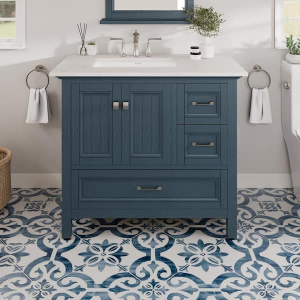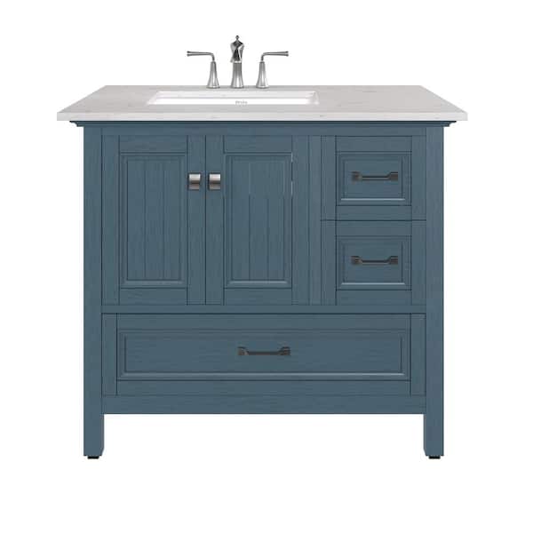 Britney 36 in. Single Sink Ash Blue Bath Vanity with White Carrara Quartz Top (Assembled)
