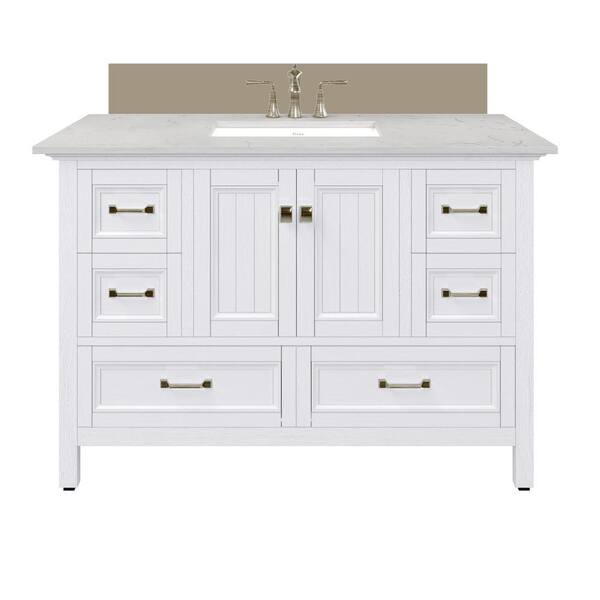 Britney 48 in. Single Sink White Bath Vanity with White Carrara Quartz Top (Assembled)