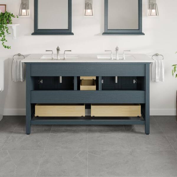 • 60 in. W x 22 in. D x 34 in. H vanity with carrara quartz top