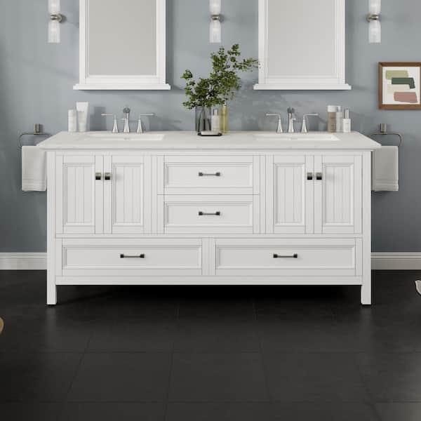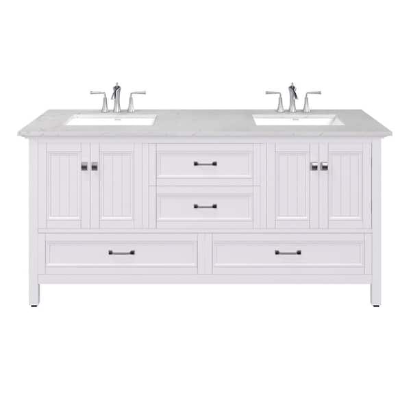 Britney 72 in. Double Sink White Bath Vanity with White Carrara Quartz Top (Assembled)